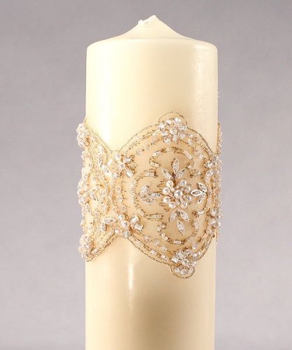Beverly Clark's Luxe Collection Unity Candle in ivory. This exquisite Collection is expertly crafted to create a one-of-a-kind antique style. The elaborate beading and delicate details give each piece the allure of vintage inspired lace a pretty accessory to match any wedding theme. Available in white and ivory.