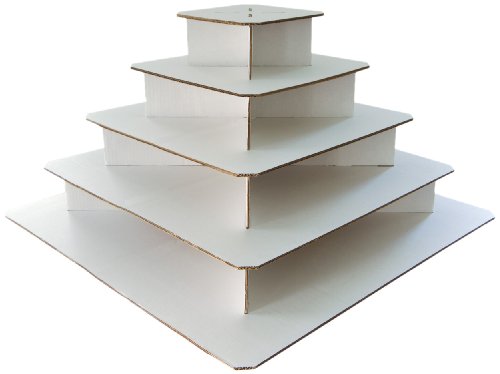 The Original Large Square Cupcaketree Cupcake Stand is a versatile and affordable alternative to traditional cakes. Perfect for larger events such as Weddings and anniversary parties, this corrugated cardboard cupcake stand comes with 5 tiers with 4-inch between tiers and holds up to 300 standard sized cupcakes. The top tier is 10-inch in square and can hold a large cake topper. Fully customizable using spray enamel, ribbon, paper, lace and more. Holds 200 cupcakes with bottom tier removed.