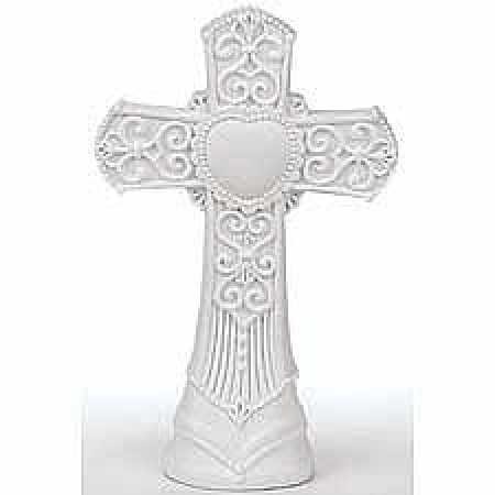 - Pretty White Cross Top w/scrolls & a heart in the middle.