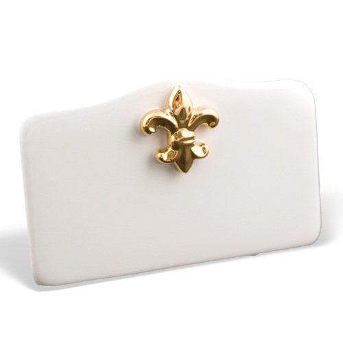 Stately, elegant, and fine describes this beautiful embossed fleur de lis design. Each fleur de lis is hand painted in 22k gold. Made of erasable ceramic, they are best used as name plates or to identify items on your buffet. PlaceTiles arrive in a lovely blue gift box for easy gift giving and storage. Dry-erase marker is included making it easy to write and erase. Size of PlaceTile:2-1/4-inch h by 3-3/4-inch w.