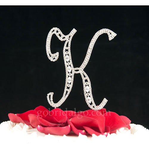 Each letter is made from hundreds of sparkling Swarovski crystals with round and marquise diamond shaped crystals. The intricate ajour design gives it a modern vintage look.4" Prongs on bottom to secure on cake and for easy of decorating. Large Letters are 4 3/4" tall. This listing is for one Large letter K