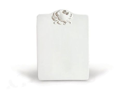 This Crab Embossed Message Tile can be used to display menus or messages. Perfect for your seafood party or buffet! Made of erasable ceramic and arrives in our signature blue gift box with one dry-erase marker. Color: White; Size: 8-inch h by 6-inch w. Self supporting and will stand on its own.