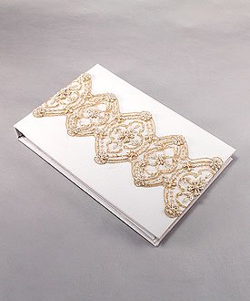 - Ivory guest book wrapped in vintage style lace