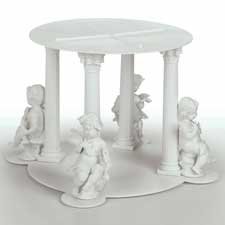 An idyllic setting for your romantic cake. Pillars snap on to plates for strong support. Set includes 6 pieces: four 7 in. Harvest Cherub pillars and two 9 in. separator plates (lower plate has 12 in. overall diameter).