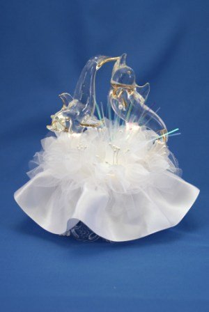 - Crystalline glass dolphins with lights and gold highlights and rainbow spray