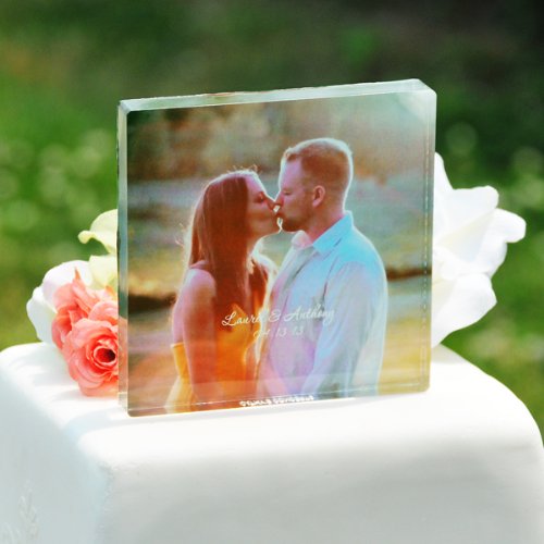 Ditch the traditional bride and groom statues of yesterday's wedding cakes, and modernize yours with our contemporary Custom Photo Cake Topper! Crafted of sturdy acrylic and featuring your own design, this stylish topper will be the perfect feature of