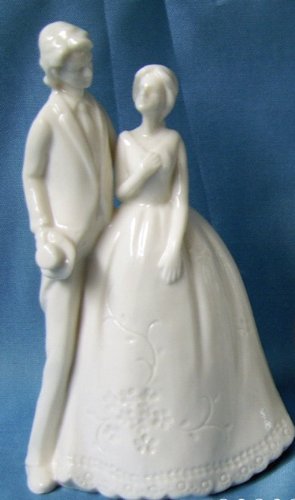 A traditional and elegant Bride & Groom Figurine to decorate your wedding cake with class! High quality glazed porcelain Figurine. Imported to our own specifications. Conforms to consumer safety standards CPSC - adds a touch of class