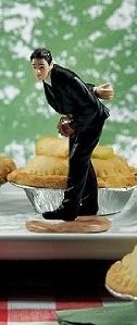 For all of those baseball sports fans, this is the cake topper that truly hits home. Great on a cake or with mini apple pies. Baseball and apple pie - couldn't be more appropriate! Hand painted porcelain.